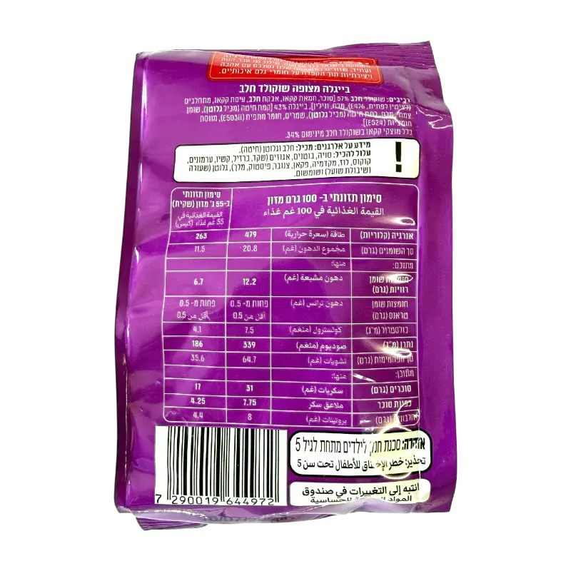 Ingredients: Wheat flour, sugar, vegetable fats, cocoa powder, milk solids, salt, emulsifiers, flavorings.
