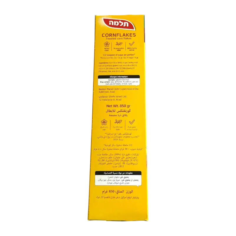 Telma Cornflakes are classic toasted corn flakes with a light, crispy texture and a mild natural taste. They are made from corn and suitable for everyday breakfast.