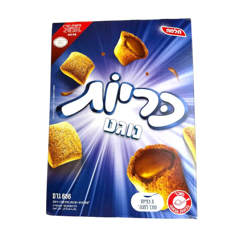 Telma Kariot are crispy cereal pillows filled with nougat cream. They combine a crunchy outer layer with a smooth and sweet nougat filling.